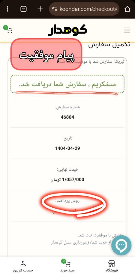 اگر این صفحه ای که پایین مشاهده می کنید یعنی سفارش شما با موفقیت ثبت شده و دیگه نیازی به ثبت مجدد ثبت سفارش ندارید در غیر اینصورت به خاطر ثبت سفارش مجدد سفارش شما با تاخیر ارسال میشه به خاطر جلوگیری از ثبت سفارش اشتباه.