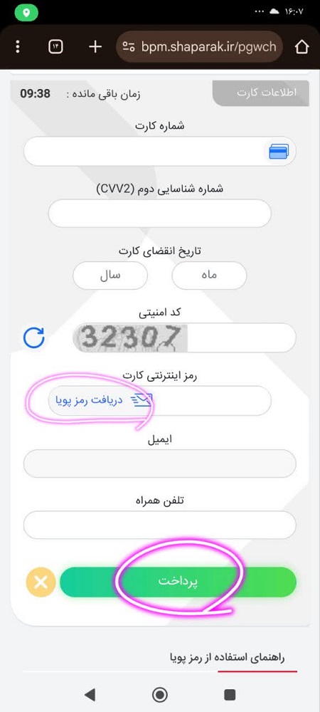 مرحله پرداخت آنلاین با کارتهای بانکی: